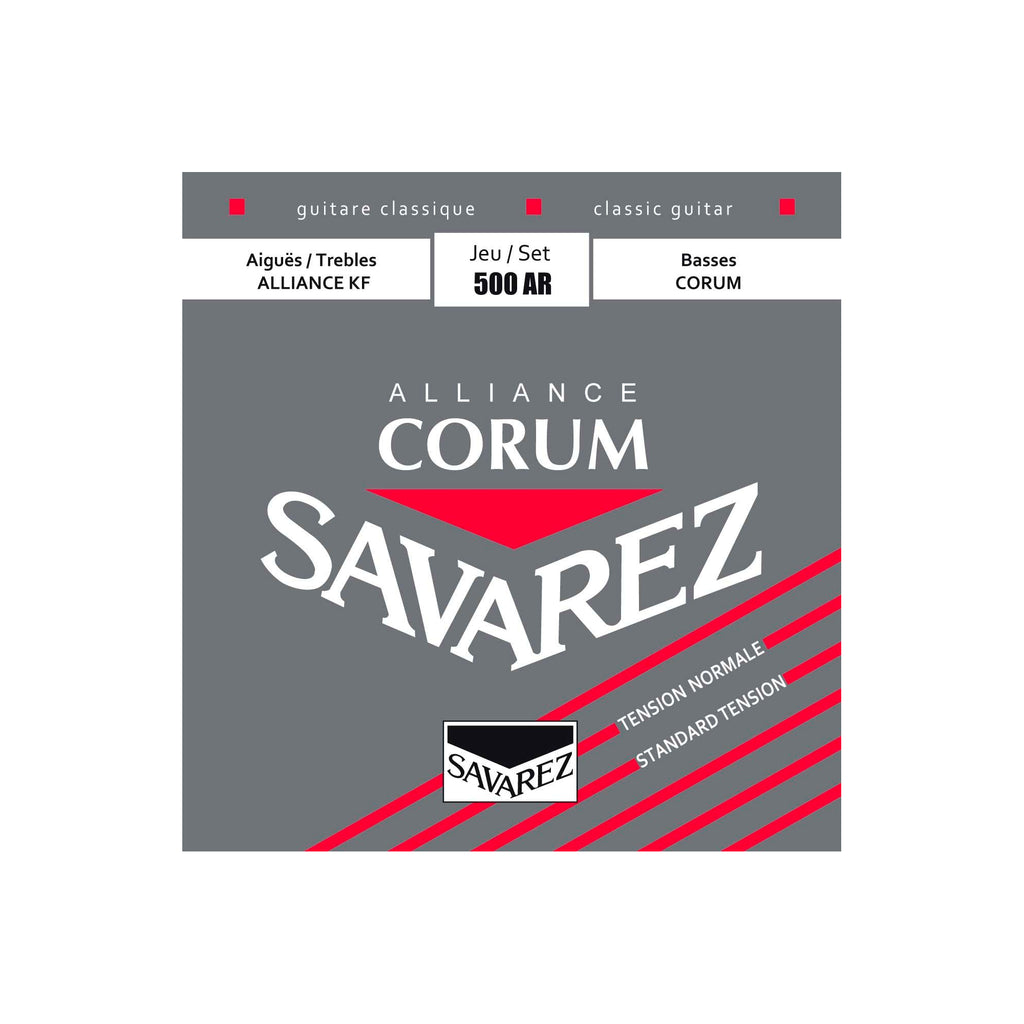 Las Savarez Alliance Corum 500 AR son un juego de cuerdas para guitarra clásica de tensión normal (Normal Tension) perteneciente a la serie Alliance Corum de Savarez. Este set combina cuerdas agudas de fluorocarbono más finas para una claridad sonora destacada en las posiciones altas, con cuerdas graves “Corum Flexible Strings” — un entorchado innovador sobre núcleo de nylon que ofrece una respuesta rápida, color tonal amplio y un sonido con matices detallados.