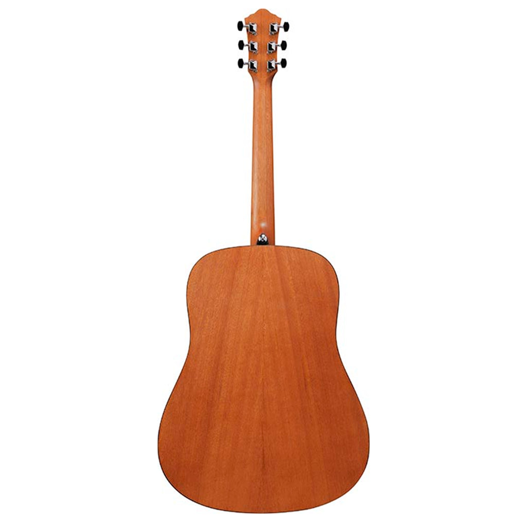 La Ibanez V40-OPN es una guitarra acústica dreadnought de nivel de entrada, ideal para principiantes. Tiene una construcción laminada que combina una tapa de abeto con aros y fondo de meranti, lo que entrega un tono claro, equilibrado y con buena proyección. Su mástil de meranti con perfil en “V” y diapasón de Nandu Wood ofrecen comodidad al tocar, incluso para quienes están empezando. Además, incorpora clavijas cromadas y pines de puente Ibanez Advantage™ para facilitar los cambios de cuerdas y mejorar la afinación. El acabado “Open-Pore Natural” permite que la madera respire y mejore la resonancia natural.