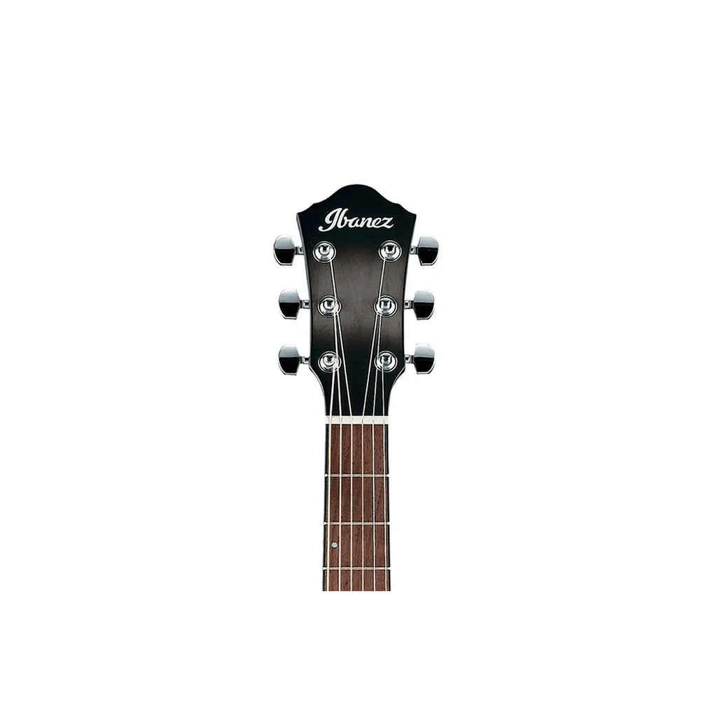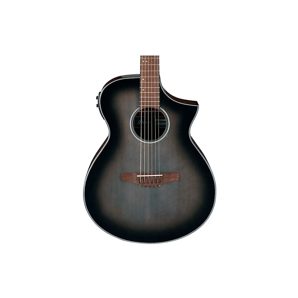 La Ibanez AEWC11 TCB (Transparent Charcoal Burst) es una guitarra electroacústica compacta con cuerpo AEWC y cutaway, diseñada para ofrecer comodidad y versatilidad, especialmente para guitarristas con experiencia en guitarras eléctricas. Su tapa de abeto (spruce) combinada con aros y fondo de sapele genera un tono equilibrado con buena claridad. El mástil delgado de nyatoh con acabado satinado y el diapasón de nogal (walnut) aportan una sensación de juego ágil y cómoda. Está equipada con una pastilla Fishman Sonicore y un preamplificador AEQ-SP1 con ecualizador (graves, medios y agudos), volumen, botón de fase y afinador incorporado, lo que la hace ideal para presentaciones amplificadas.