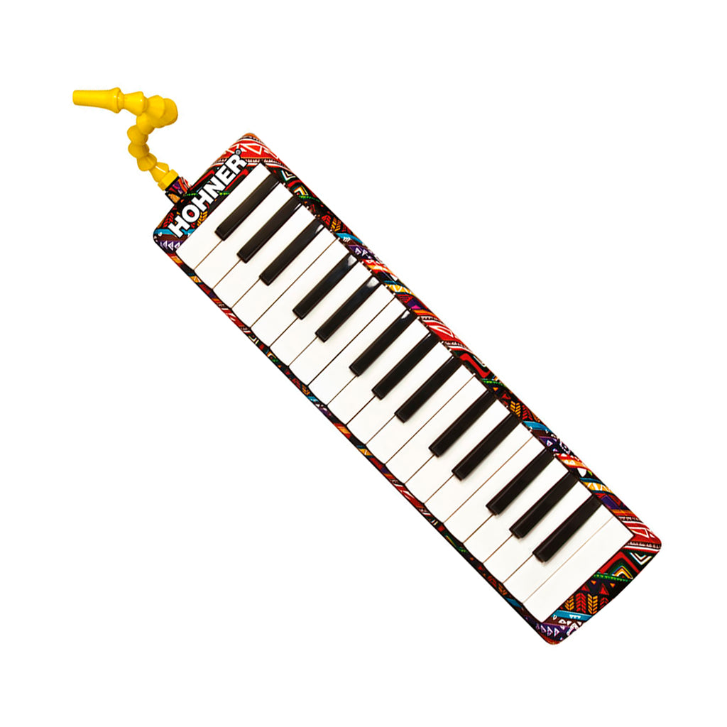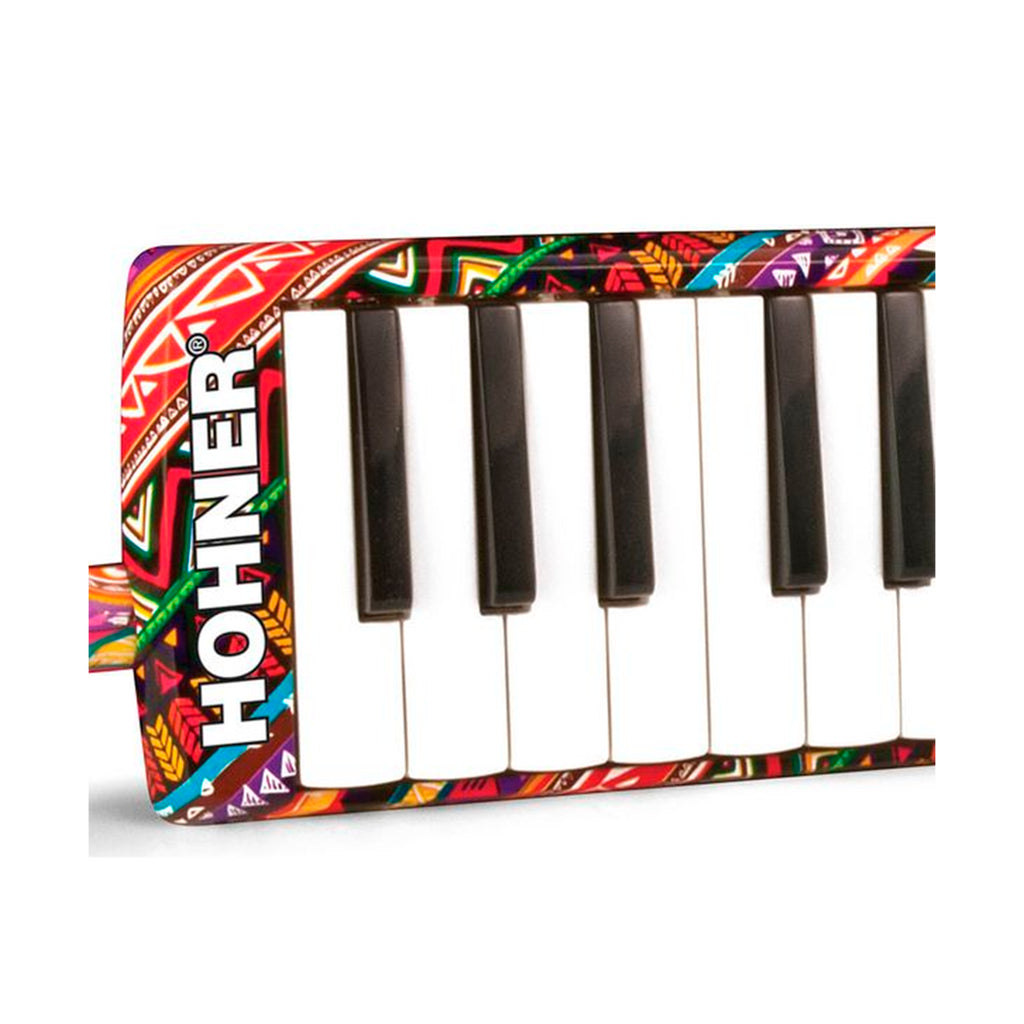 La Hohner Airboard 32 es una melodica moderna diseñada para músicos jóvenes, creativos y para uso en escenario. Combina el característico sonido de Hohner con un diseño atrevido de patrón azteca multicolor, y una embocadura ergonómica “BlowFlow” rediseñada para mayor comodidad. Su construcción es hermética, lo que permite una buena proyección sonora sin necesidad de fuentes de alimentación ni cables. Viene con una funda acolchada con correa para transportarla fácilmente.
