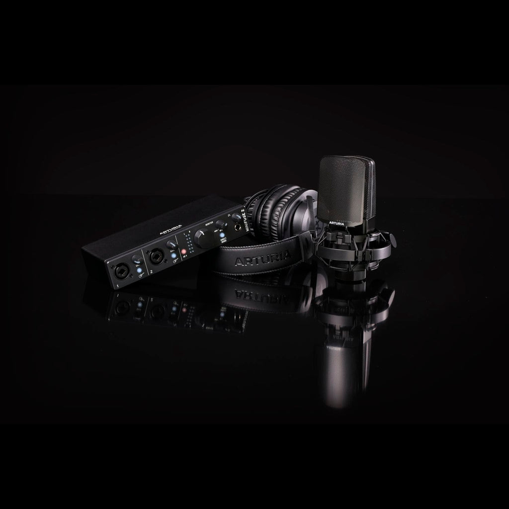 Paquete completo para empezar: interfaz + mic + audífonos + cable XLR + software.