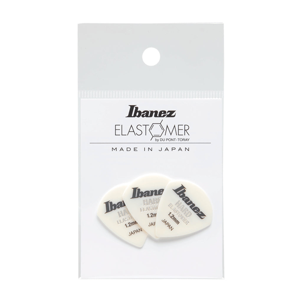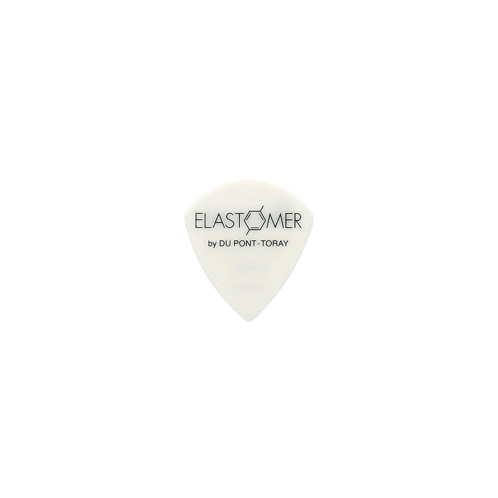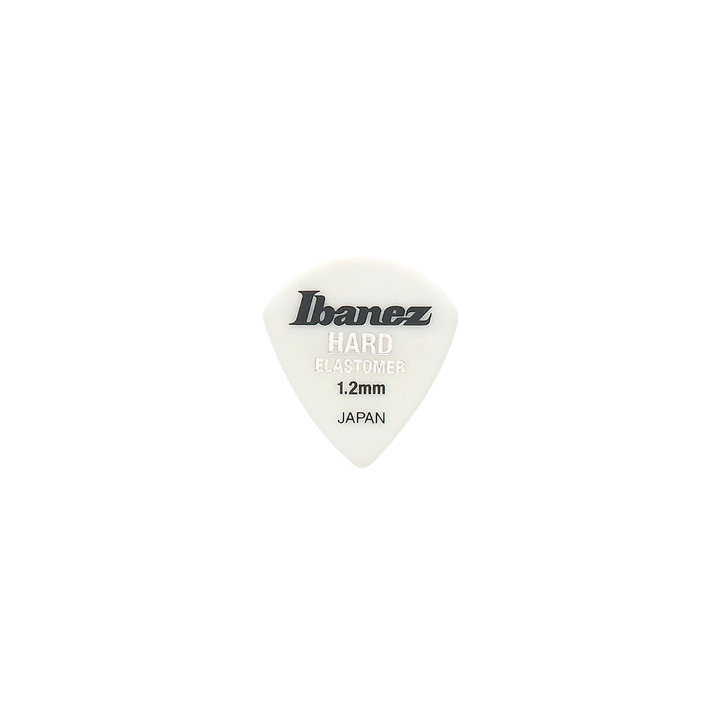 Una uña (pick) de la serie Elastomer de Ibanez, fabricada con material duro, que combina tono definido con una sensación tacto-elástica, ideal para guitarristas que buscan precisión y control.